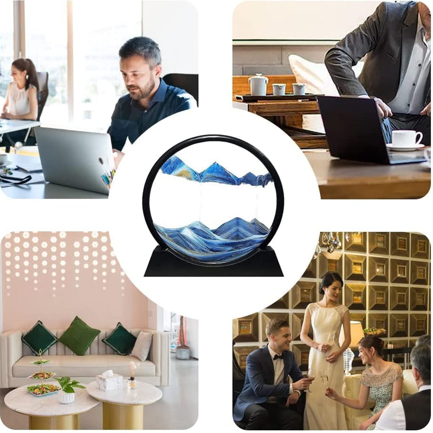 - Home and Office Decor-The moving sand picture is a wonderful artwork, exactly what you need to decorate your home or office! Sand art kits are placed where you like, so elegance and beautiful. Please try to put down all the electronic products and watch the sand falling to form a new scene. You will release stress and have an unexpectedly good mood.